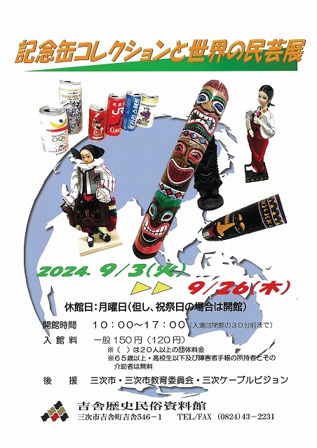 | 「記念缶コレクションと世界の民芸展」 郷土人形館よりみちぼっこが長年にわたり収集してきた“記念缶”やその土地独自のお面を中心とした民芸コレクションを展示します。 当時の世相を懐かしんだり、民芸品のルーツに思いを巡らせたりほっこりした時間を過ごしてみませんか。 |