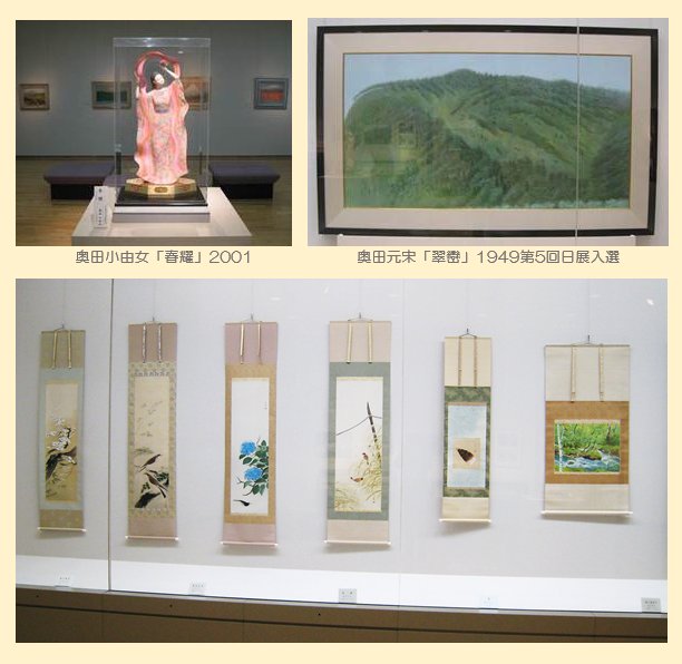 吉舎町出身の文化勲章受章者日本画家:奥田元宋・文化功労者人形作家:奥田小由女ご夫婦の作品を常設展示しています。
