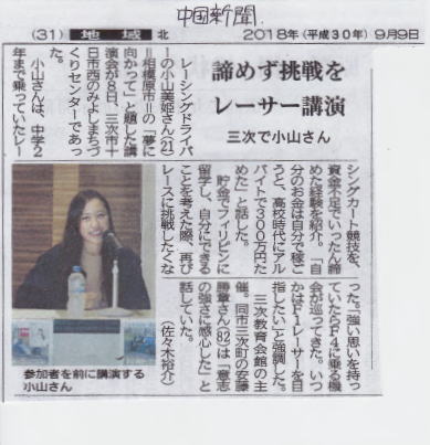 ○2018年9月8日に講演会を開催しました。翌日の中国新聞に掲載されました。